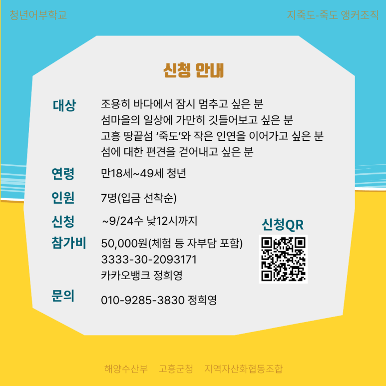 6. [채용공고] 고흥 지죽도-죽도 어촌앵커조직 단기근로자 채용